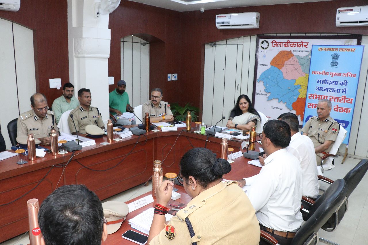 बीकानेर, 9 जुलाई। मुख्य सचिव श्रीमती उषा शर्मा ने रविवार को कलक्ट्रेट सभागार में आयोजित सभांग स्तरीय बैठक में कानून व्यवस्था की स्थिति की समीक्षा की। इस दौरान पुलिस महानिदेशक श्री उमेश मिश्रा मौजूद रहे।