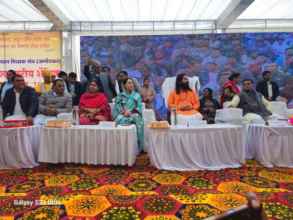 बीकानेर। राजस्थान शिक्षक संघ (अंबेडकर) का दो दिवसीय प्रांतीय सम्मेलन शुक्रवार को बाबा खींवदास पीजी महाविद्यालय सांगलिया, सीकर में आयोजित हुआ। पीठाधीश्वर अखिल भारतीय सांगलिया धूणी ओम दास महाराज के सानिध्य में आयोजित प्रांतीय सम्मेलन में पहले दिन मुख्य अतिथि उपमुख्यमंत्री दीया कुमारी, विशिष्ट अतिथि महिला व बाल विकास राज्य मंत्री मंजू बाघमार, खाजूवाला विधायक डॉ. विश्वनाथ मेघवाल, रविशेखर मेघवाल आदि ने शिरकत की। इस अवसर पर शिक्षक संघ द्वारा अतिथियों का स्वागत-अभिनंदन किया गया। कार्यक्रम में शिक्षकों की विभिन्न मांगों पर मंथन किया गया। सम्मेलन में बीकानेर से प्रदेश सभाध्यक्ष मोडाराम कड़ेला, प्रदेश उपाध्यक्ष बृजेश कुमार पंवार, जिलाध्यक्ष चेतराम बालाण, जिला महामंत्री दीनदयाल जनागल, पूर्व प्रदेशाध्यक्ष सोहनलाल गोयल, मुकेश कुमार जेवरिया, केशरीचंद जनागल, राजेश कुमार सहित समस्त जिला एवं ब्लॉक कार्यकारिणी सदस्य ने सम्मेलन में शामिल हुए।